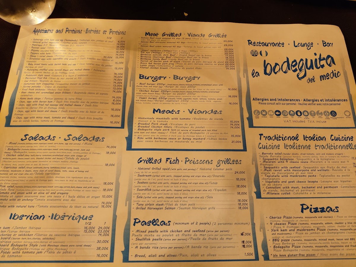 La Bodeguita del Medio offers a menu that strikes a balance between traditional Spanish flavors and familiar bar and grill comfort. The selection features simple yet satisfying dishes, perfect for casual lunches, relaxed dinners, or sharing plates over drinks on their inviting terrace.